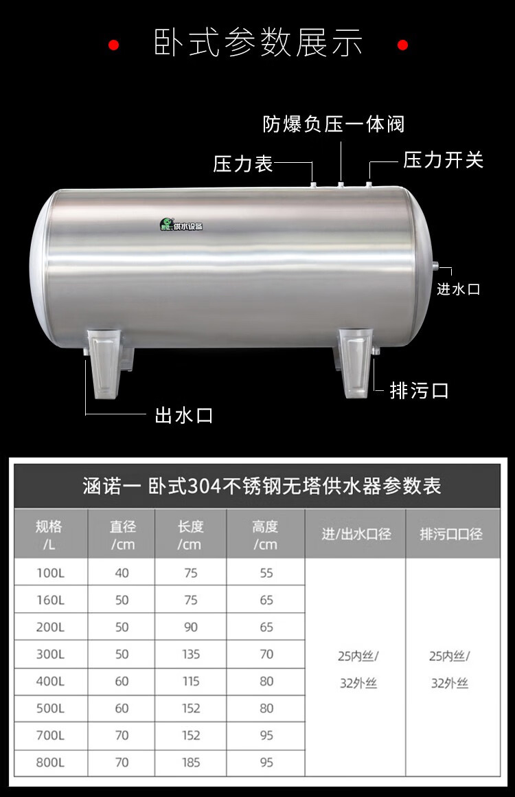 304不銹鋼壓力罐 家用全自動無塔供水器 增壓儲水罐